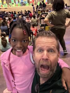 Brian Owen and his daughter had a lot of fun speaking to a group of 400 kids at the VBS program sponsored by First Baptist Church of Katy, TX.