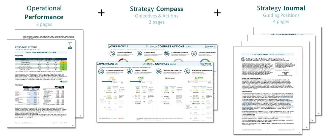 REPORTING: Maintain a sharp focus on strategic objectives and tracking them through a compelling scorecard (the Strategy Compass)