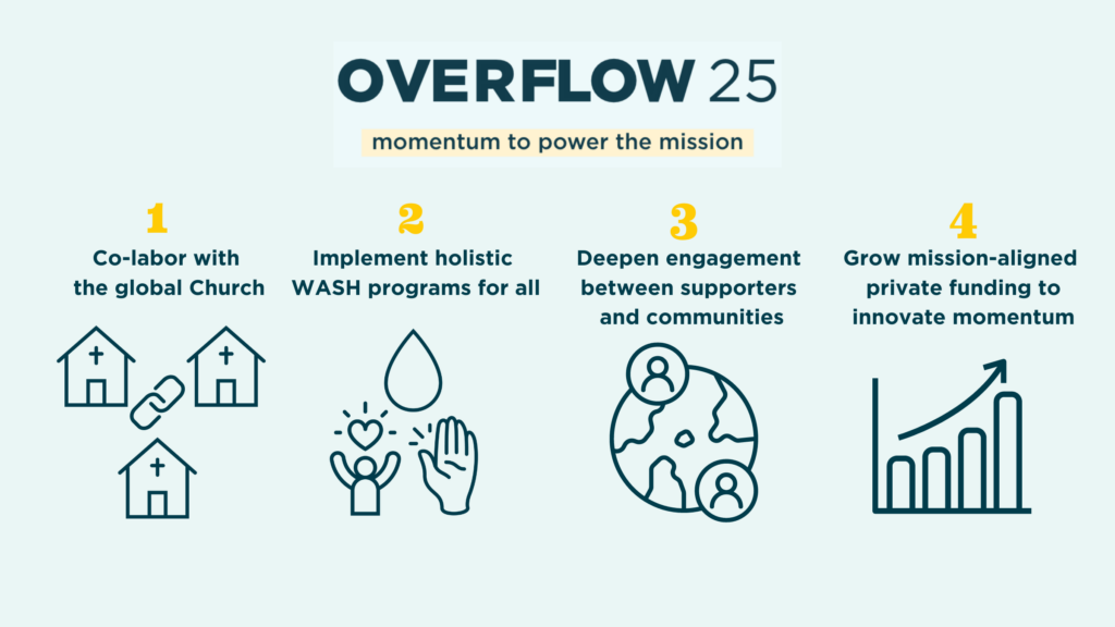 The overarching goal is to connect our supporters more directly to the work, both financially and as overall advocates for the thirsty. As supporters deepen their engagement, more of our thirsty global neighbors will be served with safe, accessible water while also hearing the Good News of the gospel. We reimagine every supporter feeling directly connected to the people we serve, regardless of size or type of investment. We also believe that given clear and simple opportunities, our supporters will be inspired to support the work at ever increasing levels.