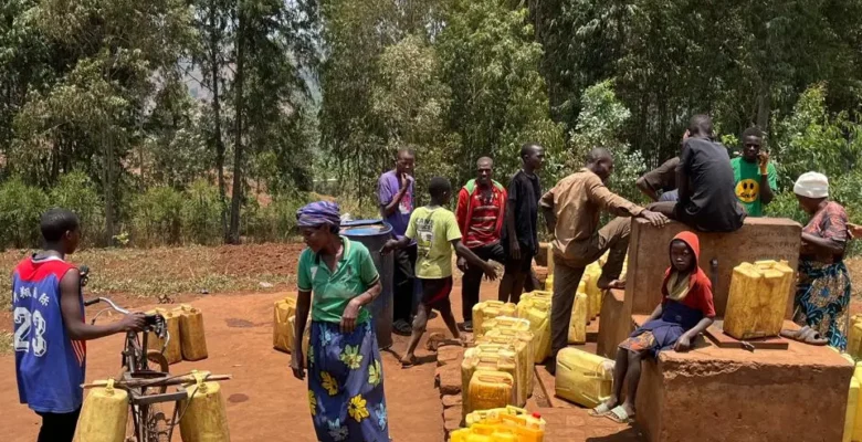 Community members waiting to collect water